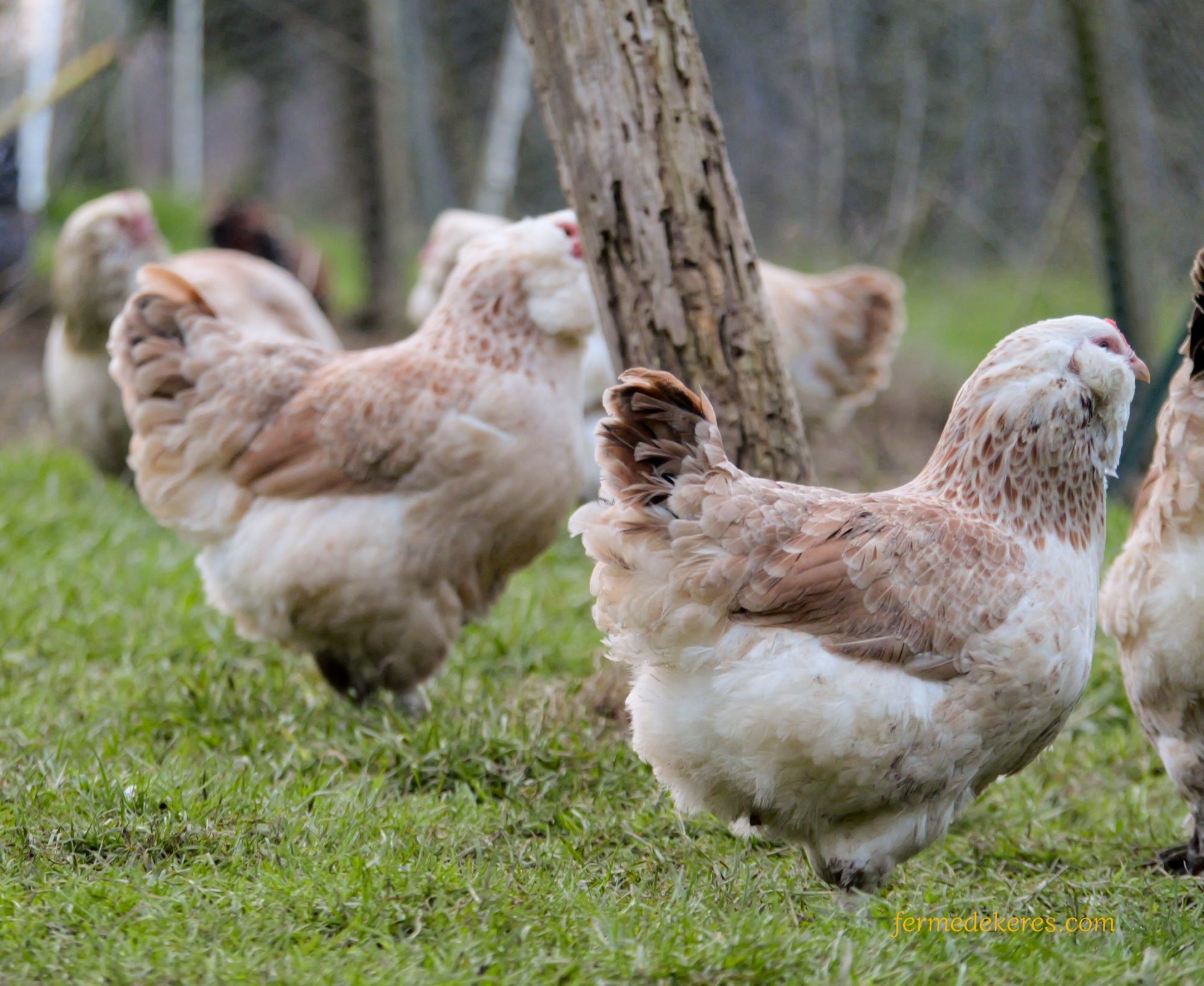 Cette année les Faverolles élevées à la ferme ne seront pas d'un type bien défini (français ou allemand). Ayant atteint le terme de ma lignée précédente, j'ai du introduire un nouveau sang qui m'apporte quelques défauts notamment au niveau du gabarit. Il y aura donc cette saison 2025 des variations dans la taille des sujets, avec des poules plus petites que d'autres. Ce problème devrait être réglé en 2 ou 3 ans.