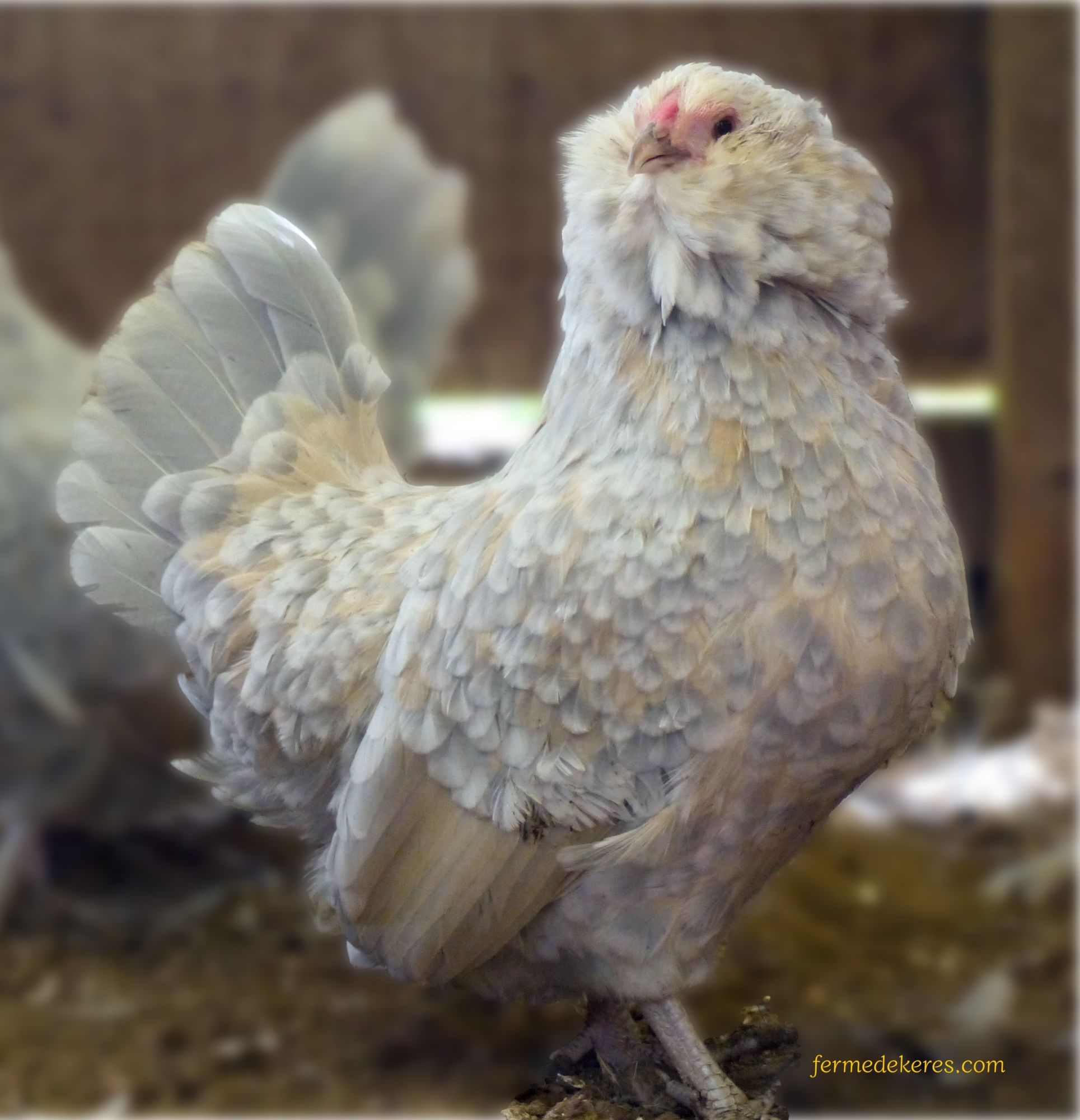 Il est à noter que la barbe augmente en volume avec les années. Les poules photographiées ici sont des poules reproductrices de plusieurs années. Les jeunes poules de l'année (celles qui sont vendues) sont en général moins fournies que leurs aînées.