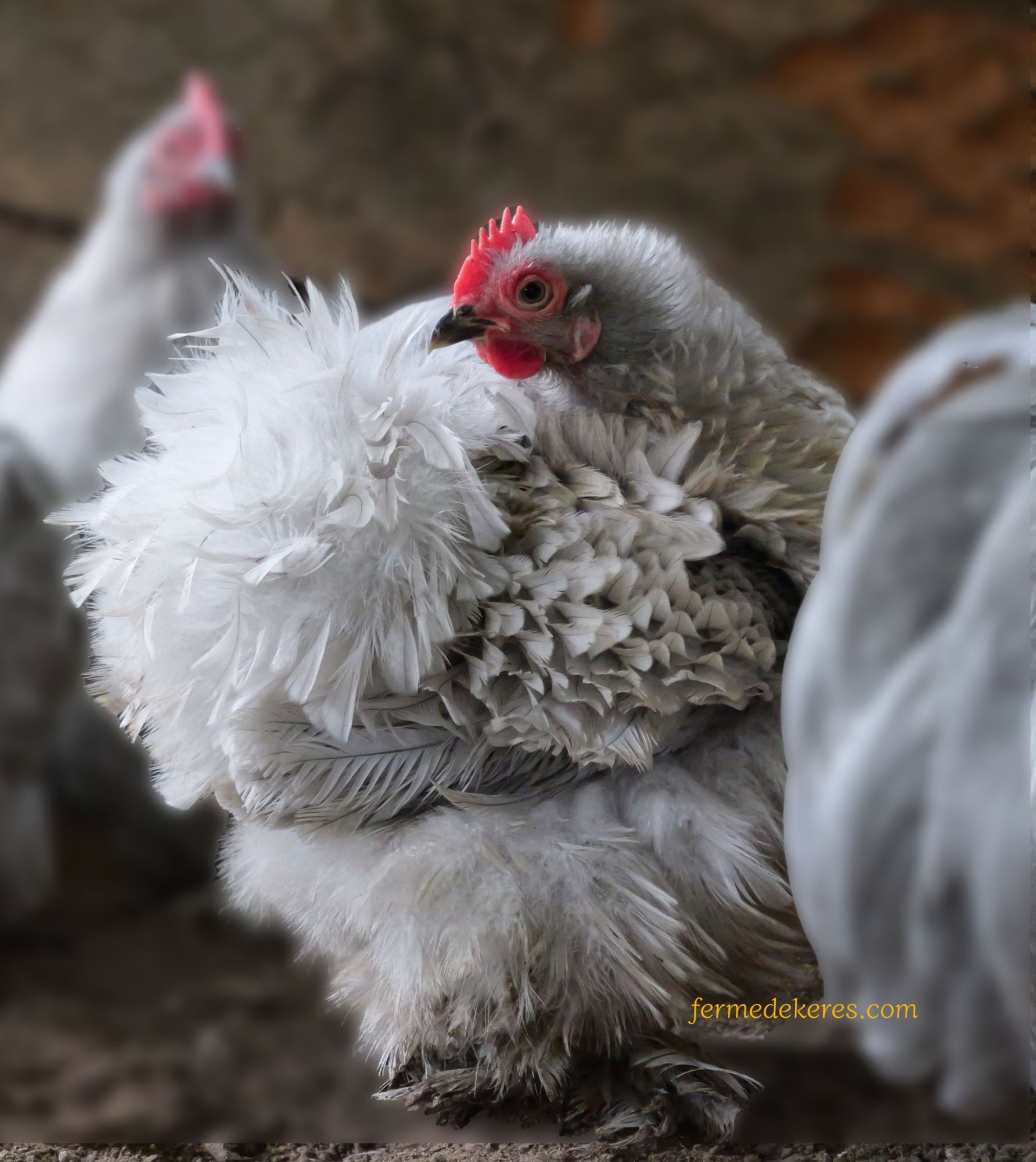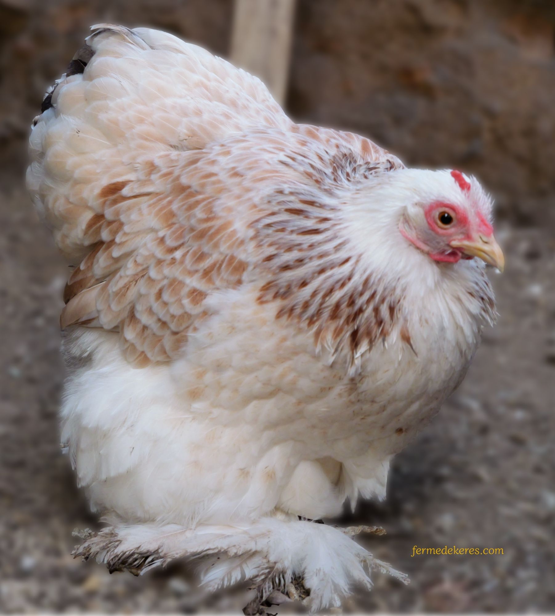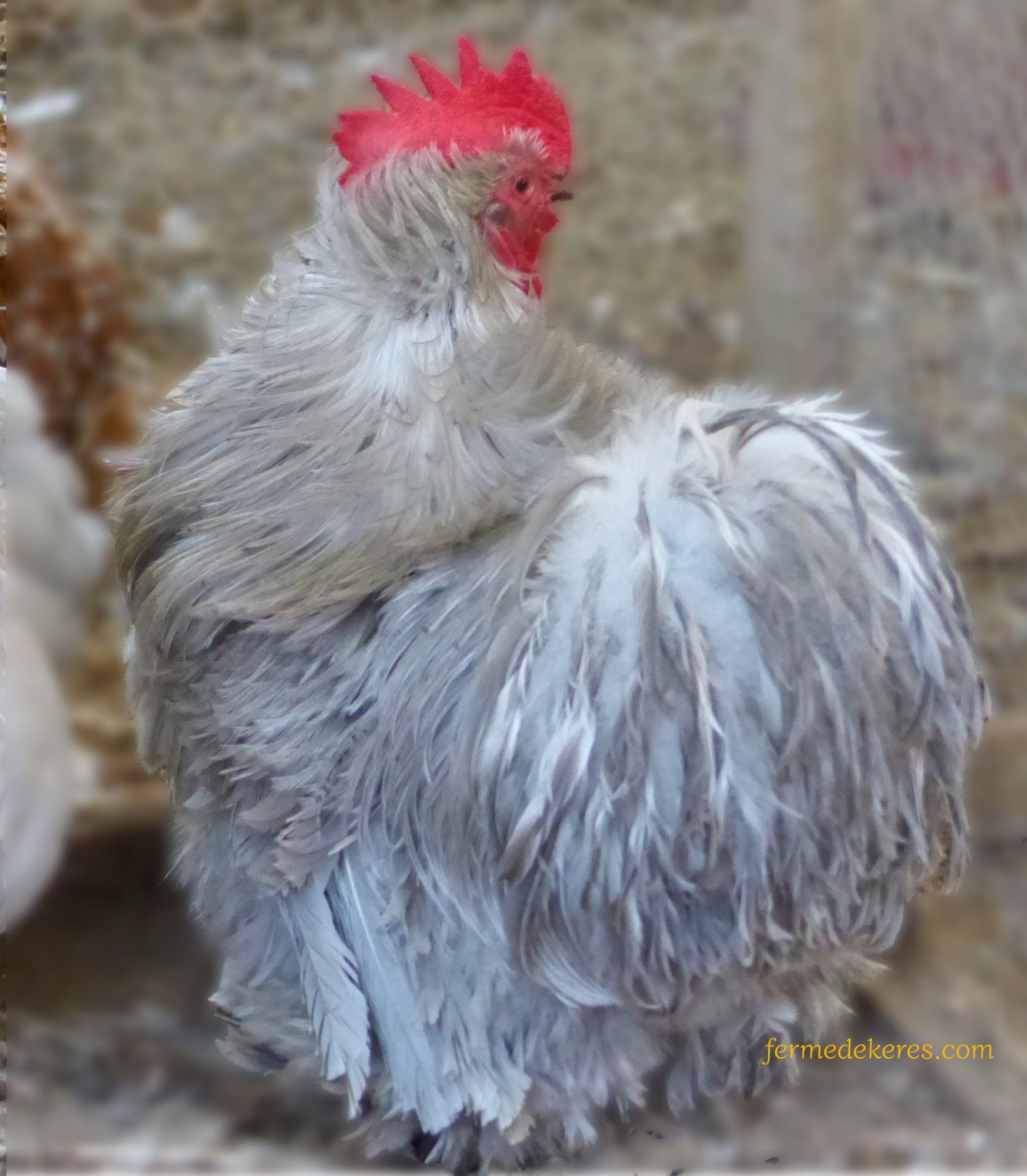 Cette frisure va à ravir à la pékin car la structure de sa plume naturellement très souple donne des mises en plis extraordinaires : plus resserrée chez la poule, en forme de houppelande chez le coq. Voir courir vers vous un groupe de pékins frisés vous met en joie pour toute la journée !