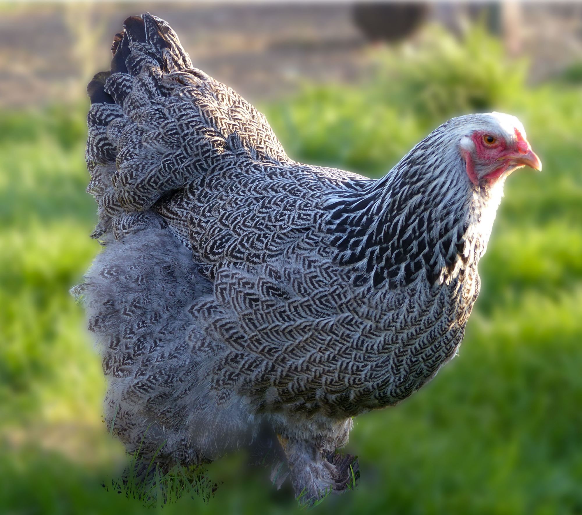 La poule idéale lorsqu'on veut une grande poule de bonne compagnie qui ne vole pas.