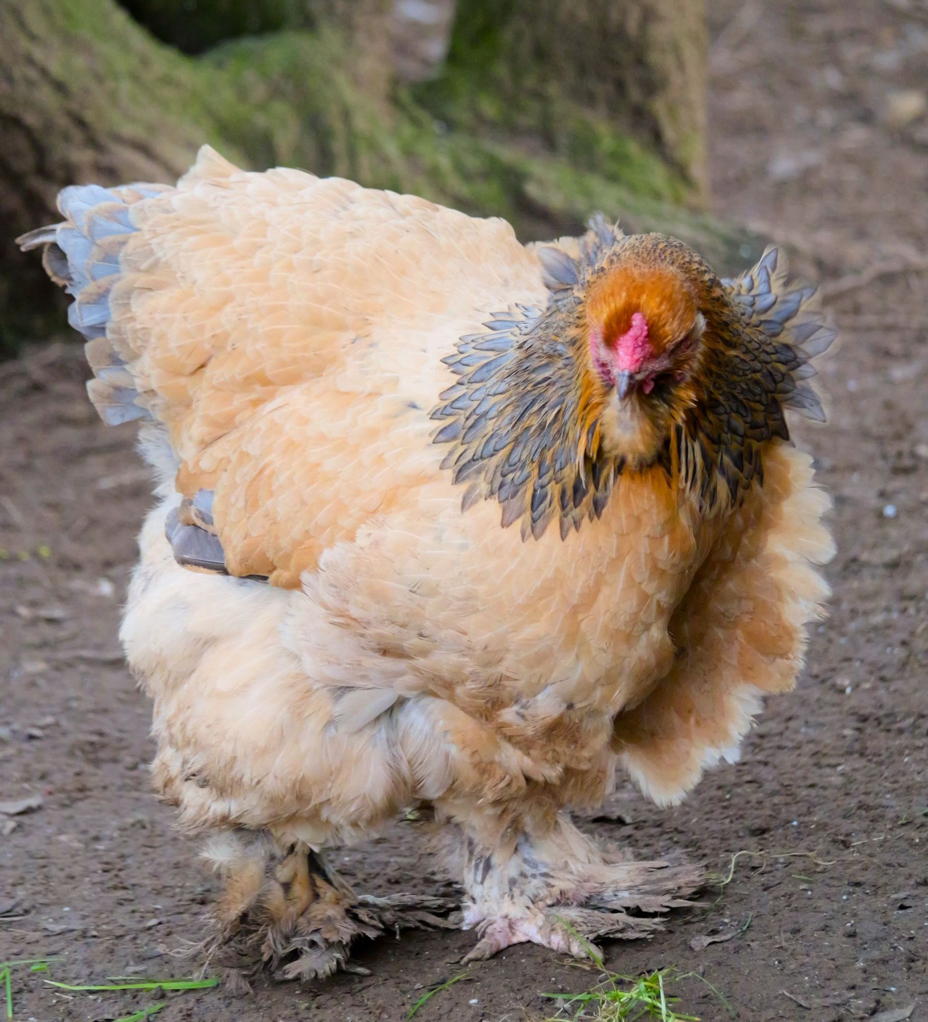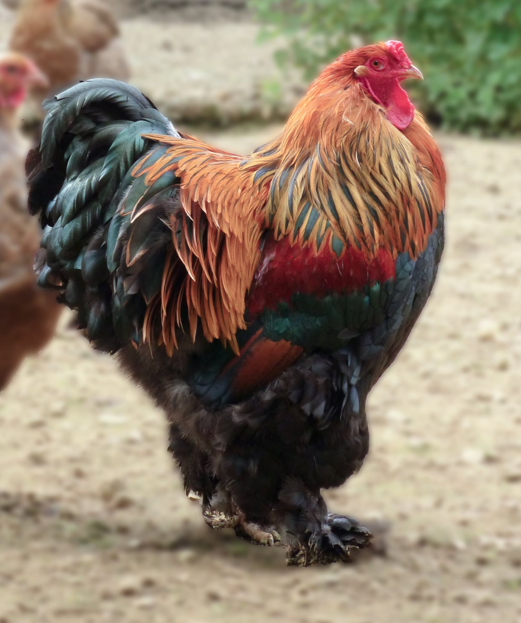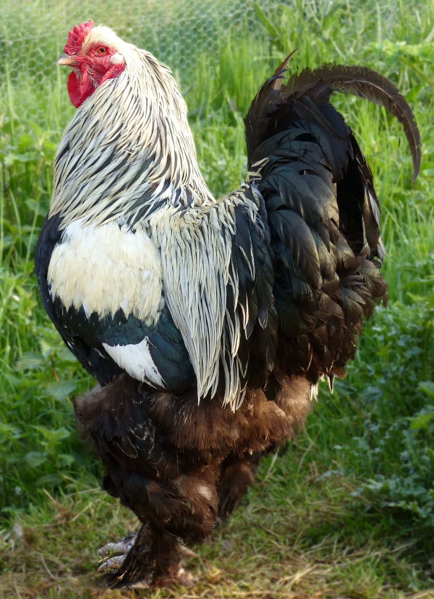 Une poule "géante" et paisible, remarquable par sa taille, ses pattes très emplumées et son caractère placide, calme, familier.